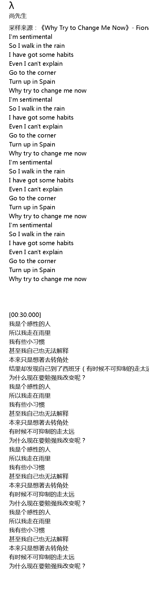 | [00:30.000] | cai yang lai yuan: Why Try to Change Me Now Fiona Apple |