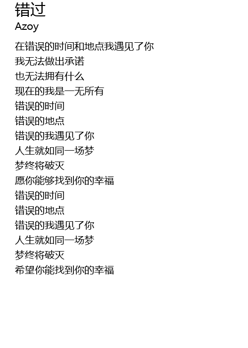| [00:31.93] | cuò wù de wǒ yù jiàn le nǐ |
