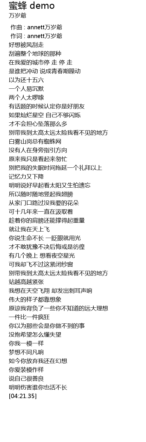 | [00:00.000] | 作曲 : annett万岁爺 |
