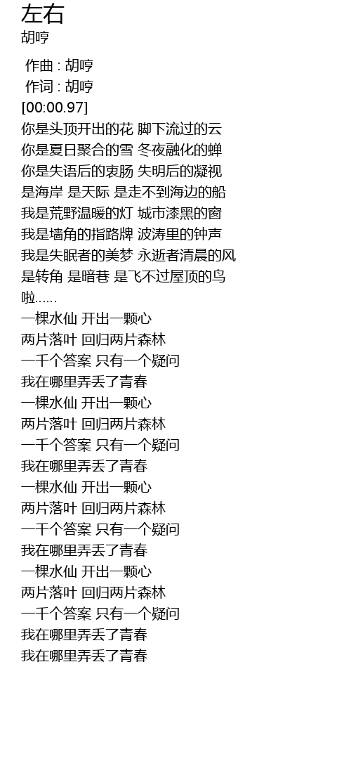 | [02:28.93] | 我在哪里弄丢了青春 |