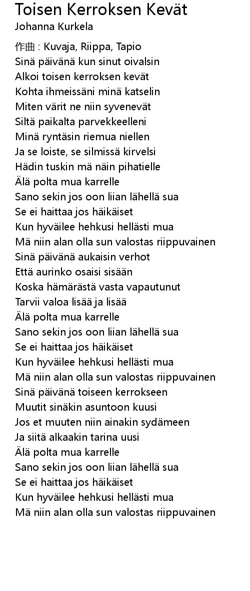 | 作曲 : Kuvaja, Riippa, Tapio | |