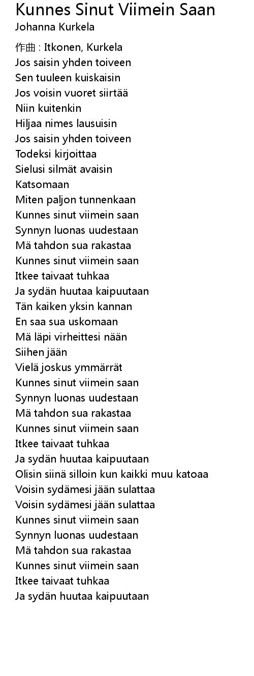| Olisin siinä silloin kun kaikki muu katoaa | |