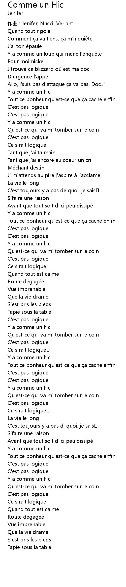 | 作曲 : Jenifer, Nucci, Verlant | |