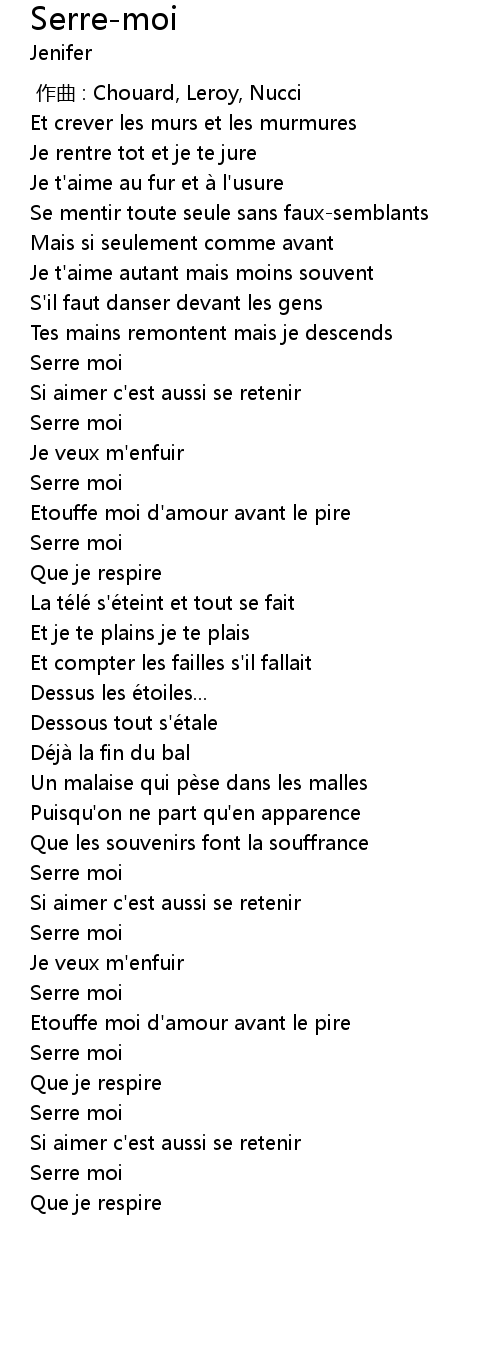 | [02:54.00] | Serre moi |
