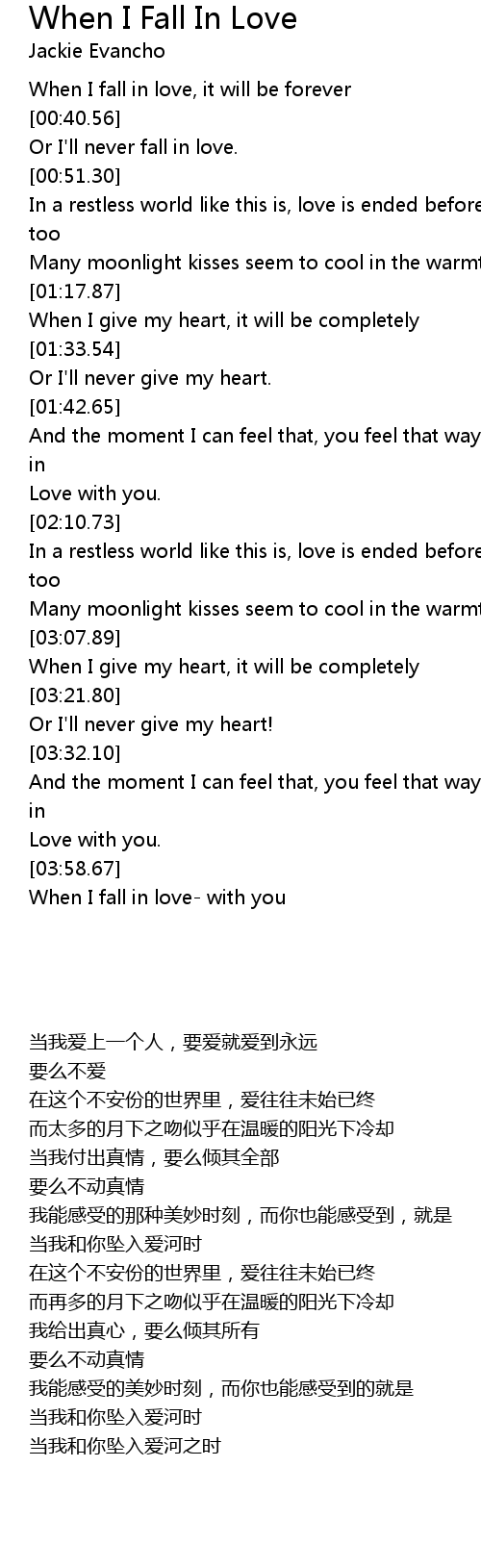 And the moment I can feel that, you feel that way too, is when I fall in |