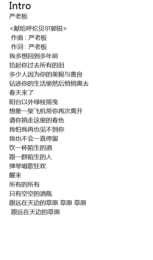 | [02:16.263] | gēn yuǎn zài tiān biān de cǎo yuán cǎo yuán cǎo yuán |