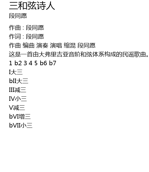 | 这是一首由大弗里吉亚音阶和弦体系构成的民谣歌曲。 | |