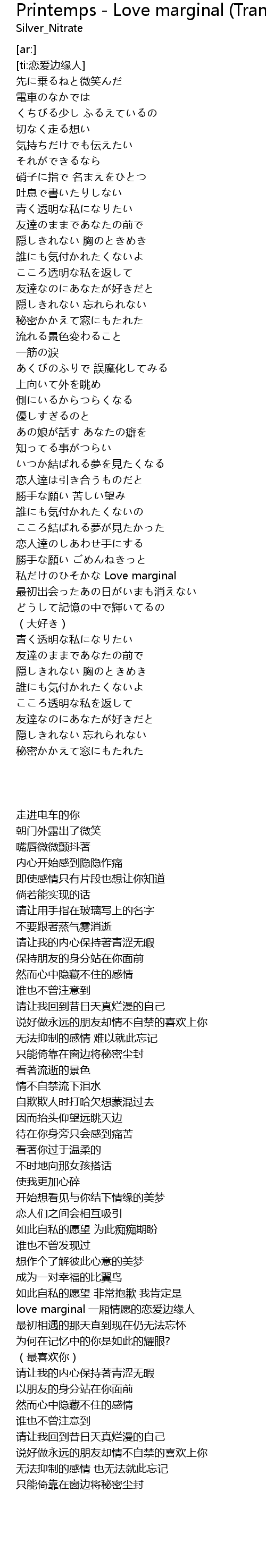 | [02:33.97] | 私だけのひそかな Love marginal |