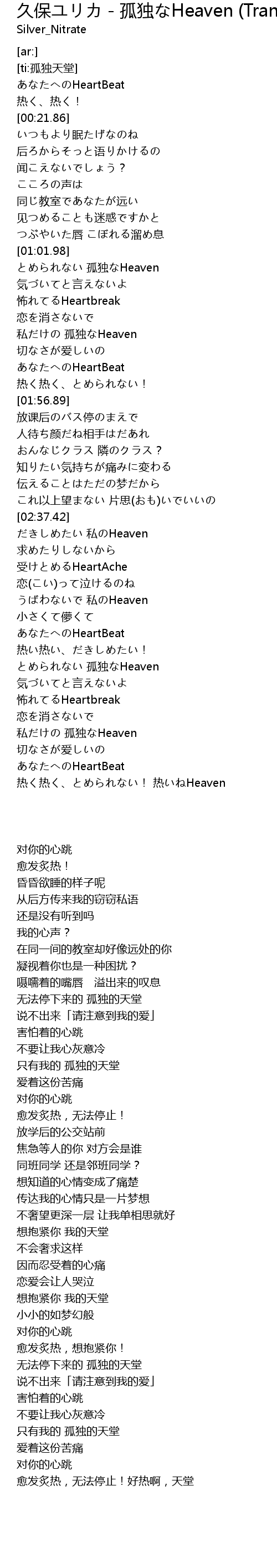 | [01:15.28] | 私だけの 孤独なHeaven |