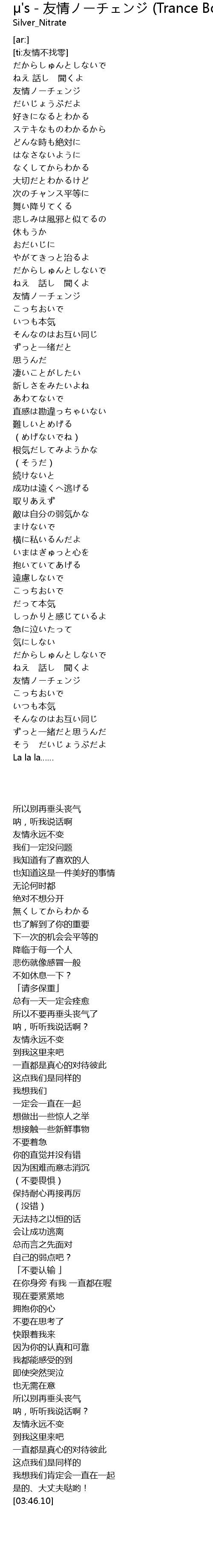 | Song | μ's - 友情ノーチェンジ (Trance Bootleg) |