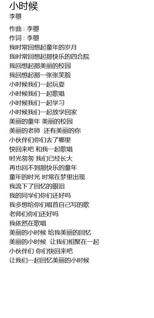 | xiǎo shí hòu wǒ men yì qǐ gē chàng | |