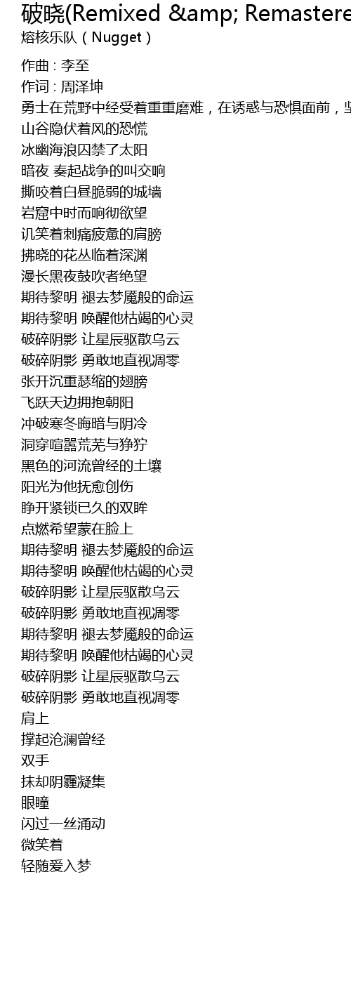 | Song | 破晓(Remixed & Remastered By Vikung Sun) |