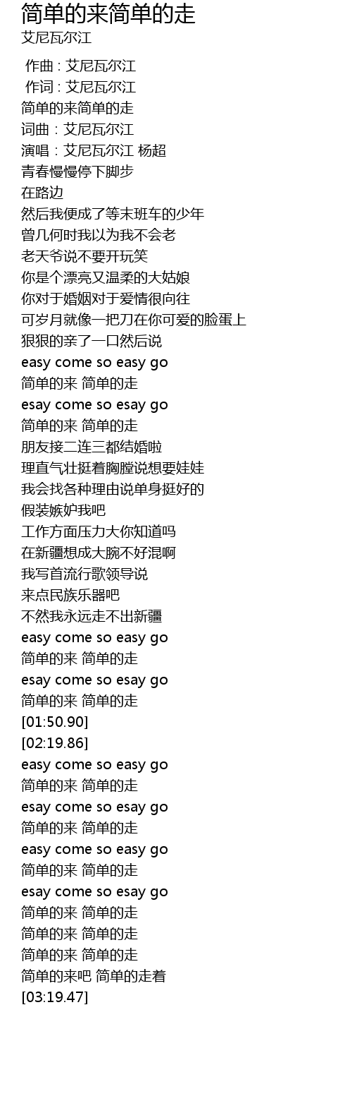 | [01:44.97] | jian dan de lai jian dan de zou |