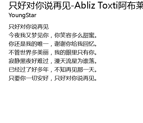 | Song | 只好对你说再见-Abliz Toxti阿布莱孜.托合提 |