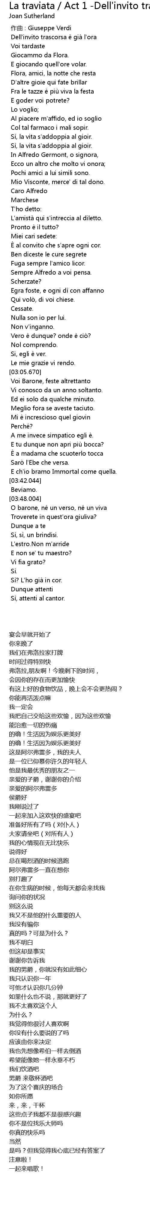 | Song | La traviata / Act 1 -Dell'invito trascorsa è già l'oraDame Joan Sutherland |