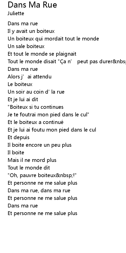 | Dans ma rue, dans ma rue | |