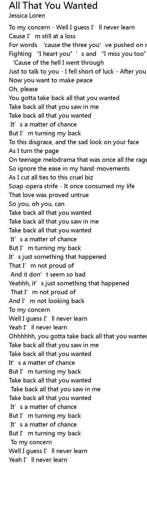 | You gotta take back all that you wanted | |