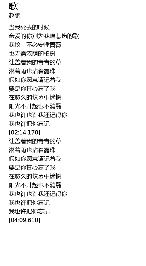 | [01:13.200] | 我坟上不必安插蔷薇 |