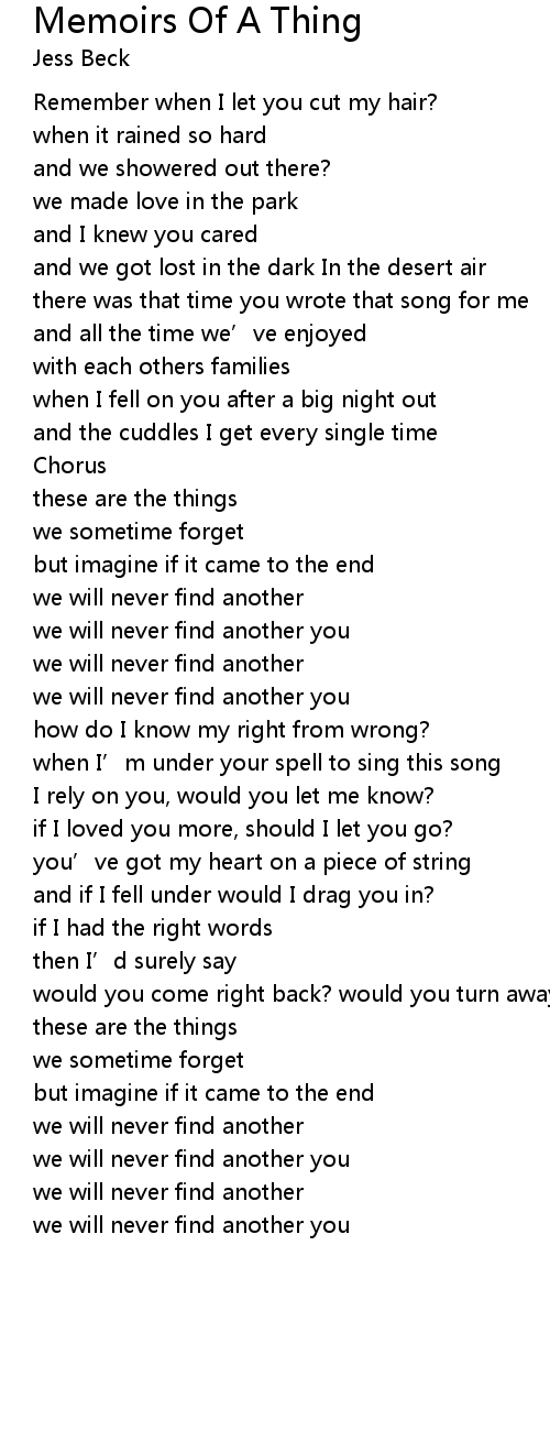 | Song | Memoirs Of A Thing |