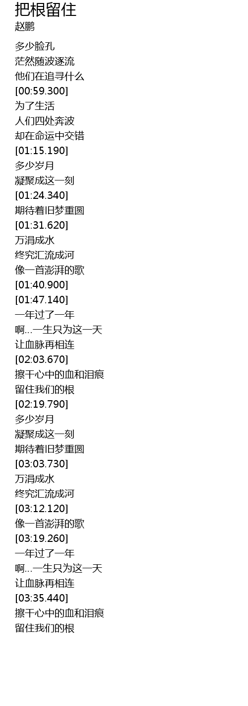 | [03:44.700] | liú zhù wǒ men de gēn |