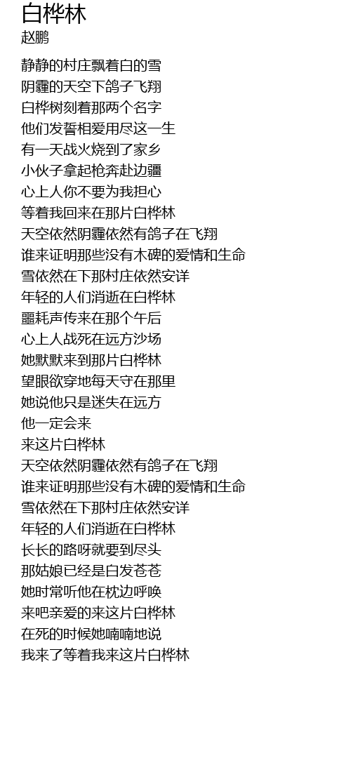 | [02:17.590] | 来这片白桦林 |