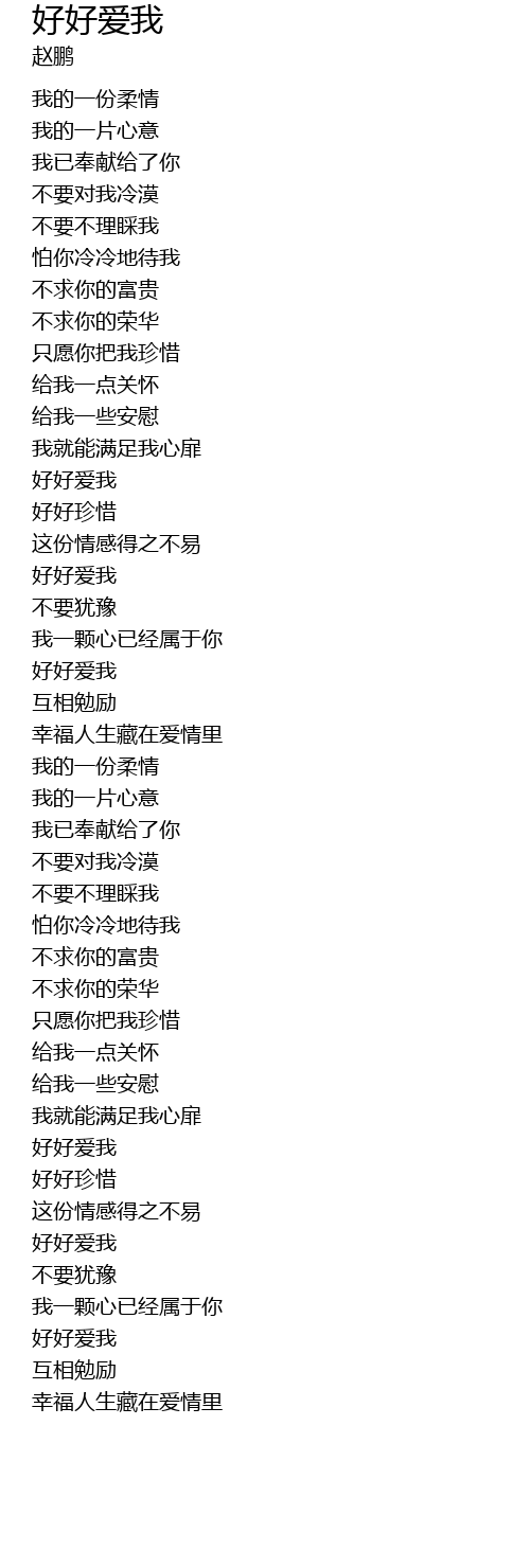 | [00:55.72] | hǎo hǎo ài wǒ |