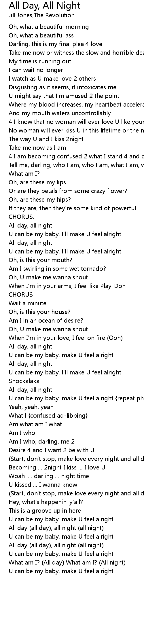 U can be my baby, make U feel alright {repeat phrase 4 times} |