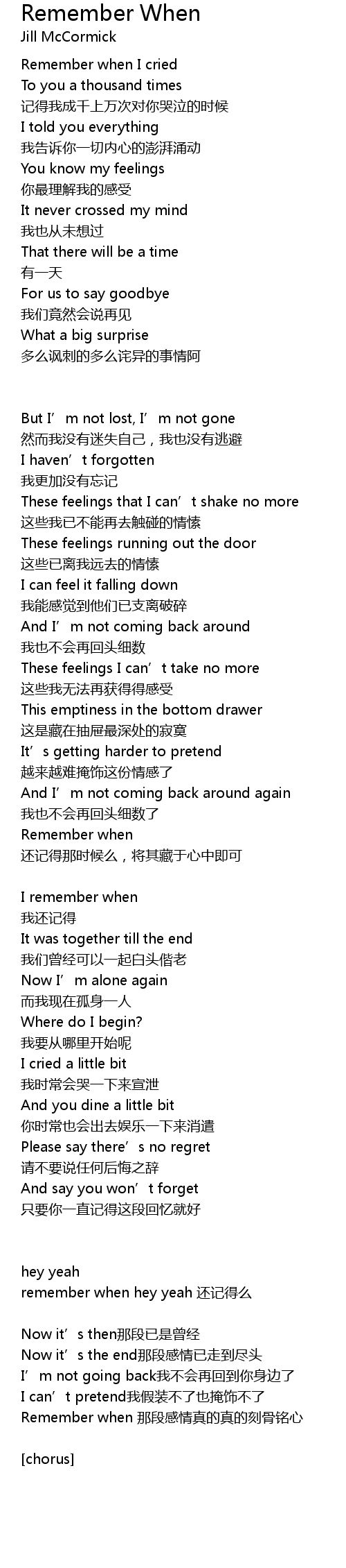 | Remember when 那段感情真的真的刻骨铭心 | |