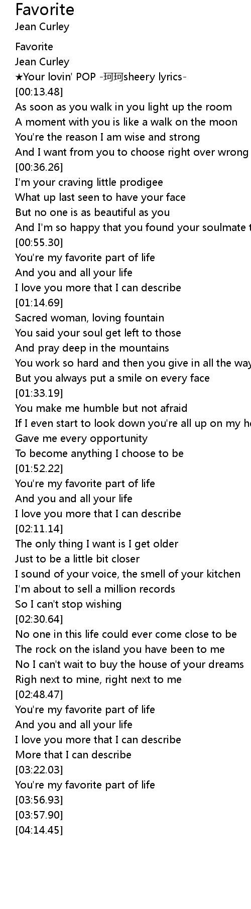 | [00:56.74] | You're my favorite part of life |
