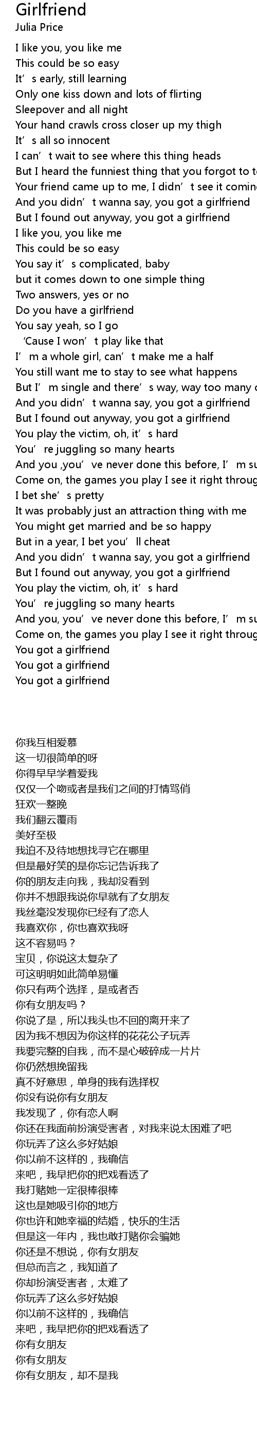 | [00:58.99] | But I found out anyway, you got a girlfriend |