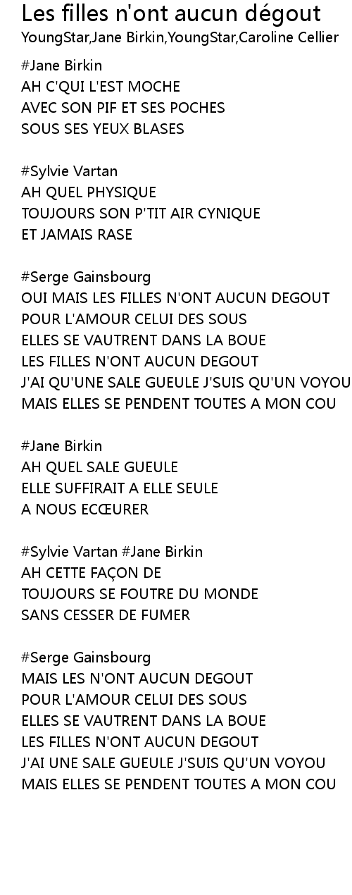 | OUI MAIS LES FILLES N' ONT AUCUN DEGOUT | |