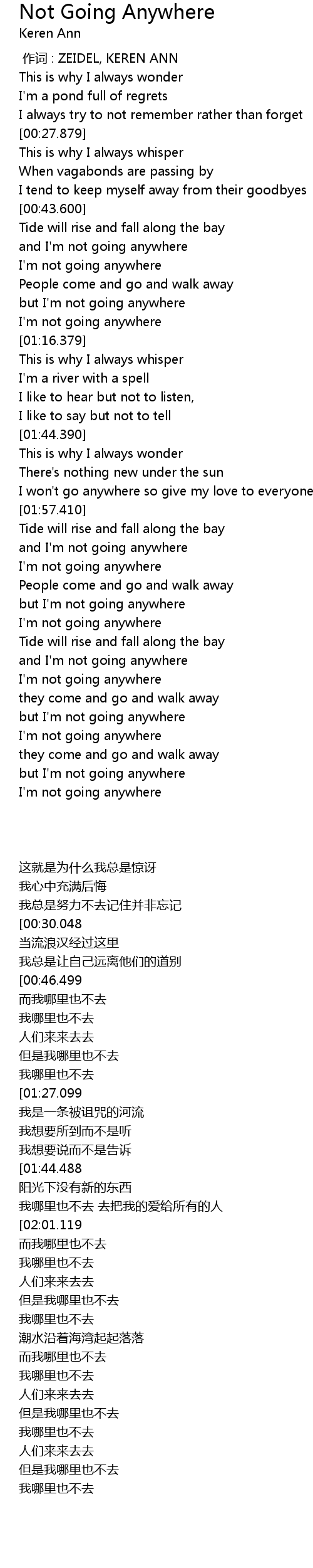 | [00:00.00] | 作词 : ZEIDEL, KEREN ANN |
