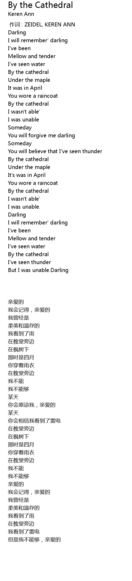 | [00:00.00] | 作词 : ZEIDEL, KEREN ANN |