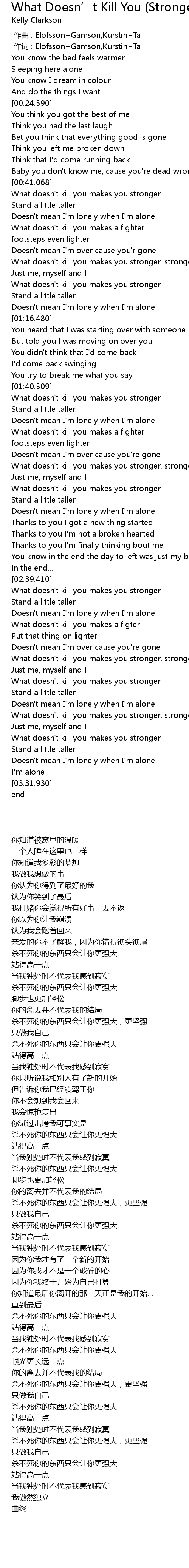 | [02:06.500] | What doesn' t kill you makes you stronger |