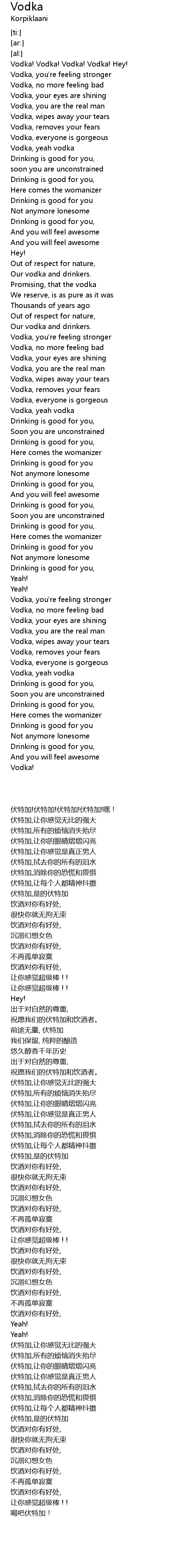 Vodka! Vodka! Vodka! Vodka! Hey! |