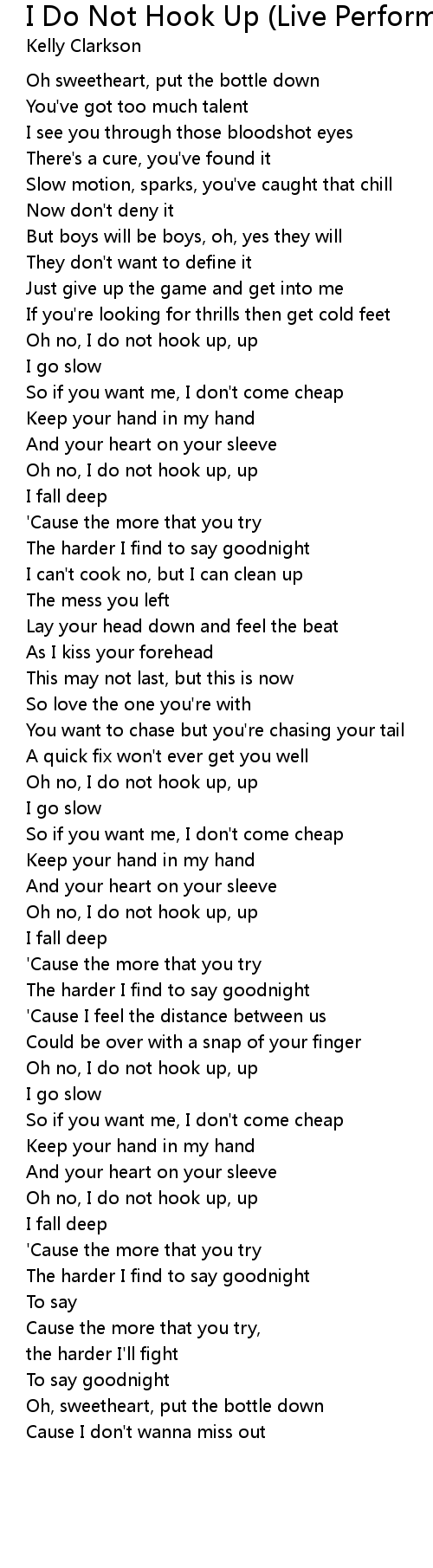 Oh no, I do not hook up, up |