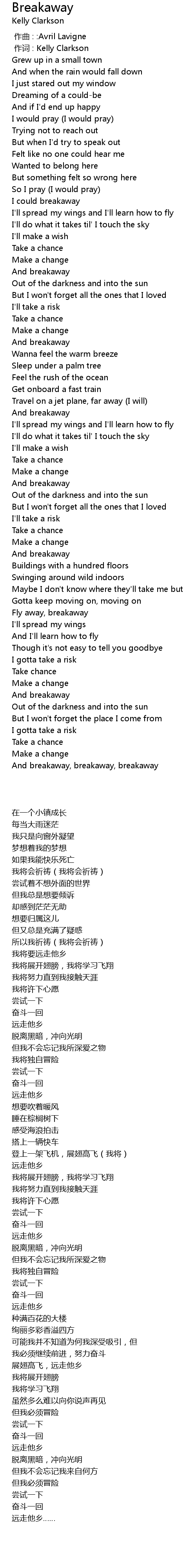 | [00:01.00] | 作词 : Kelly Clarkson |