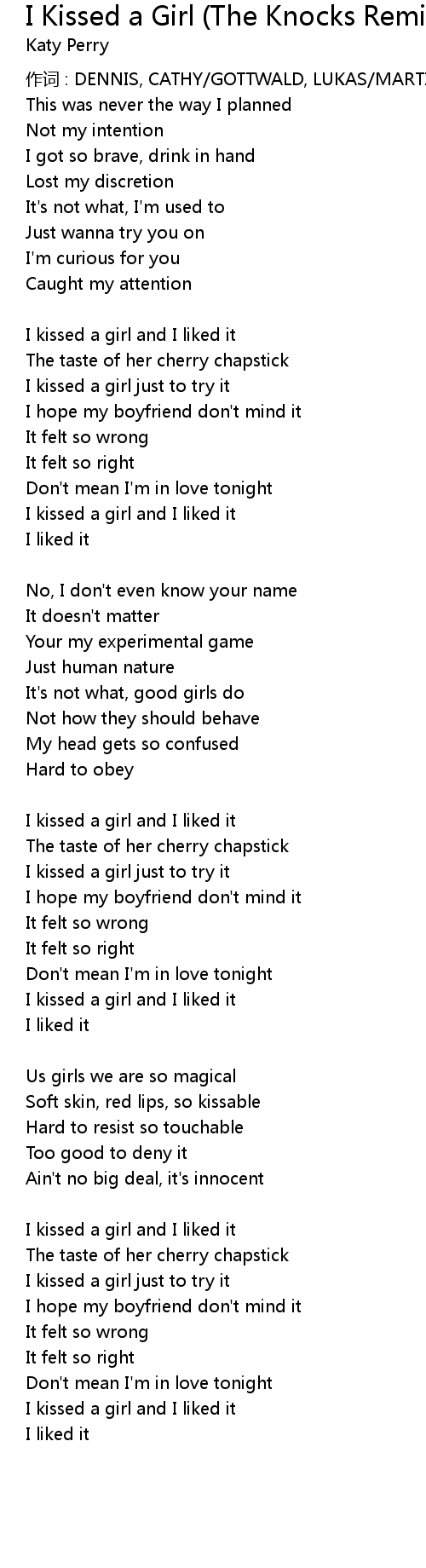 | I kissed a girl just to try it | |