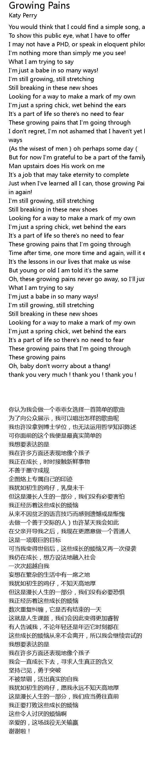 | [02:21.490] | Oh, these growing pains never go away, so I' ll just keep on trying |