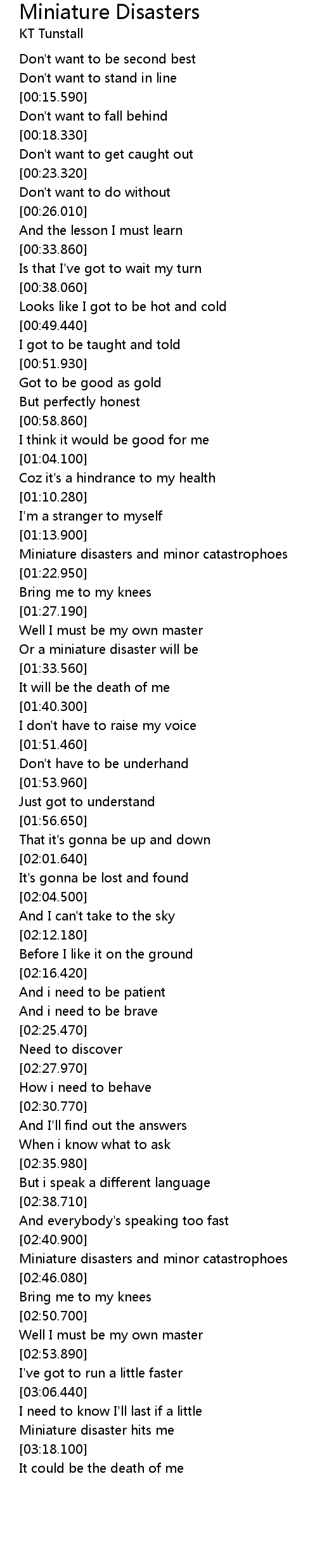Miniature Disasters Lyrics