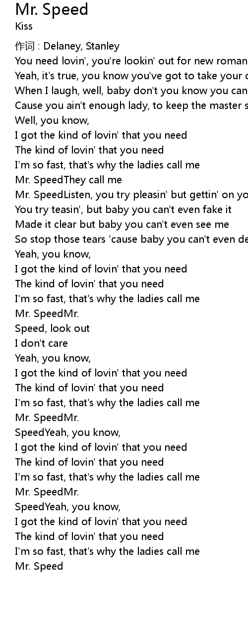 | Mr. SpeedListen, you try pleasin' but gettin' on your knees don't make it | |
