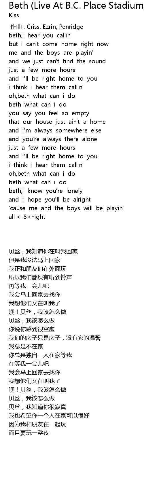 | Song | Beth (Live At B.C. Place Stadium, Vancouver/1999) |