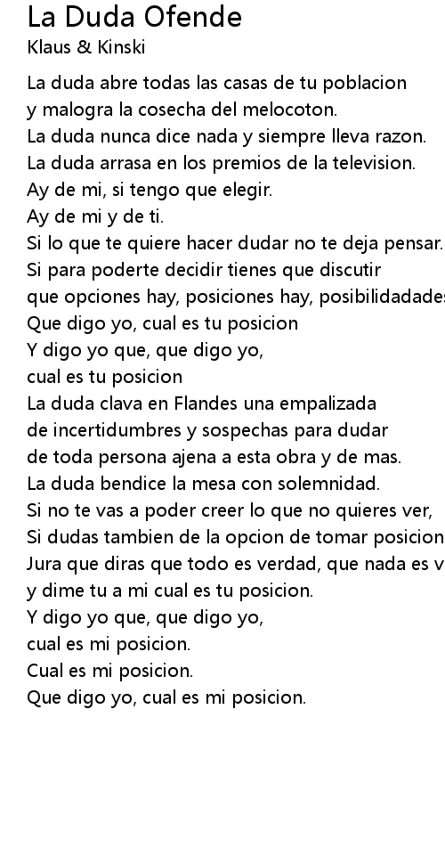 La duda nunca dice nada y siempre lleva razon. |