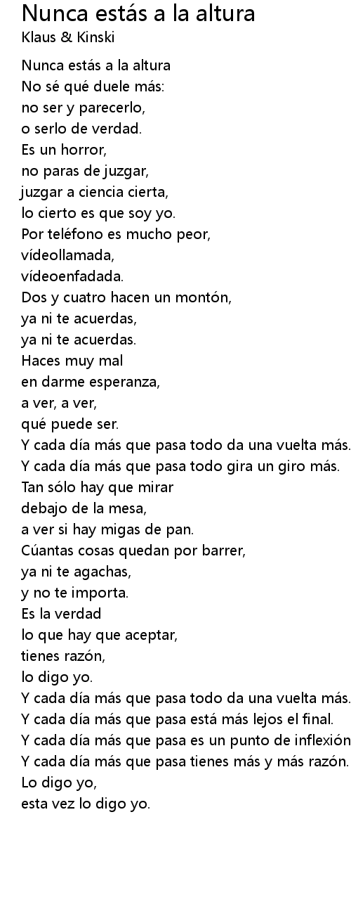 | Y cada di a ma s que pasa esta ma s lejos el final. | |