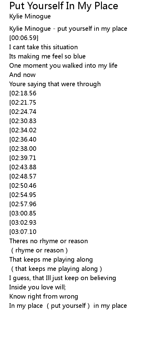 | [00:02.60] | Kylie Minogue - put yourself in my place |