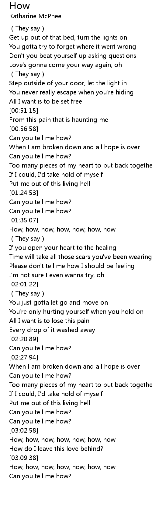 | [03:03.45] | How, how, how, how, how, how, how |