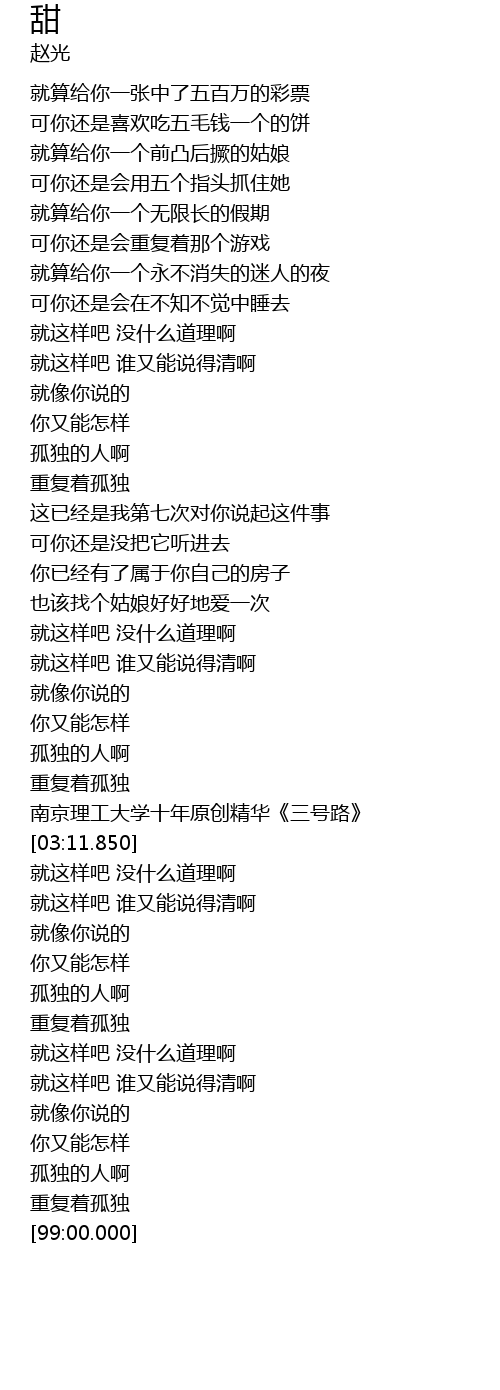 | [03:59.780] | 就这样吧 没什么道理啊 |
