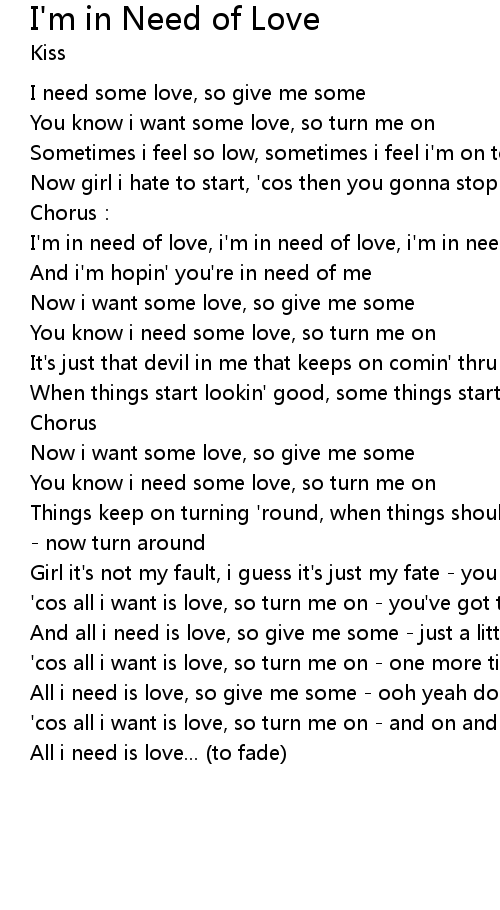 | I' m in need of love, i' m in need of love, i' m in need of love | |
