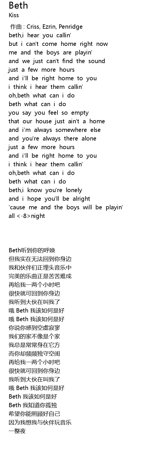 | [00:17.01] | beth,i hear you callin' |