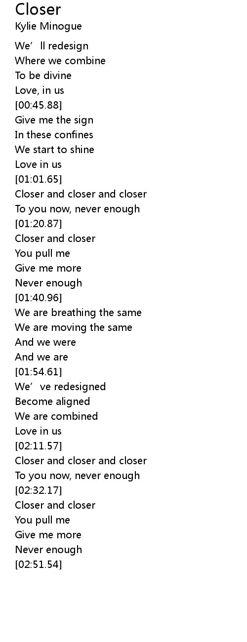 | [01:02.70] | Closer and closer and closer |